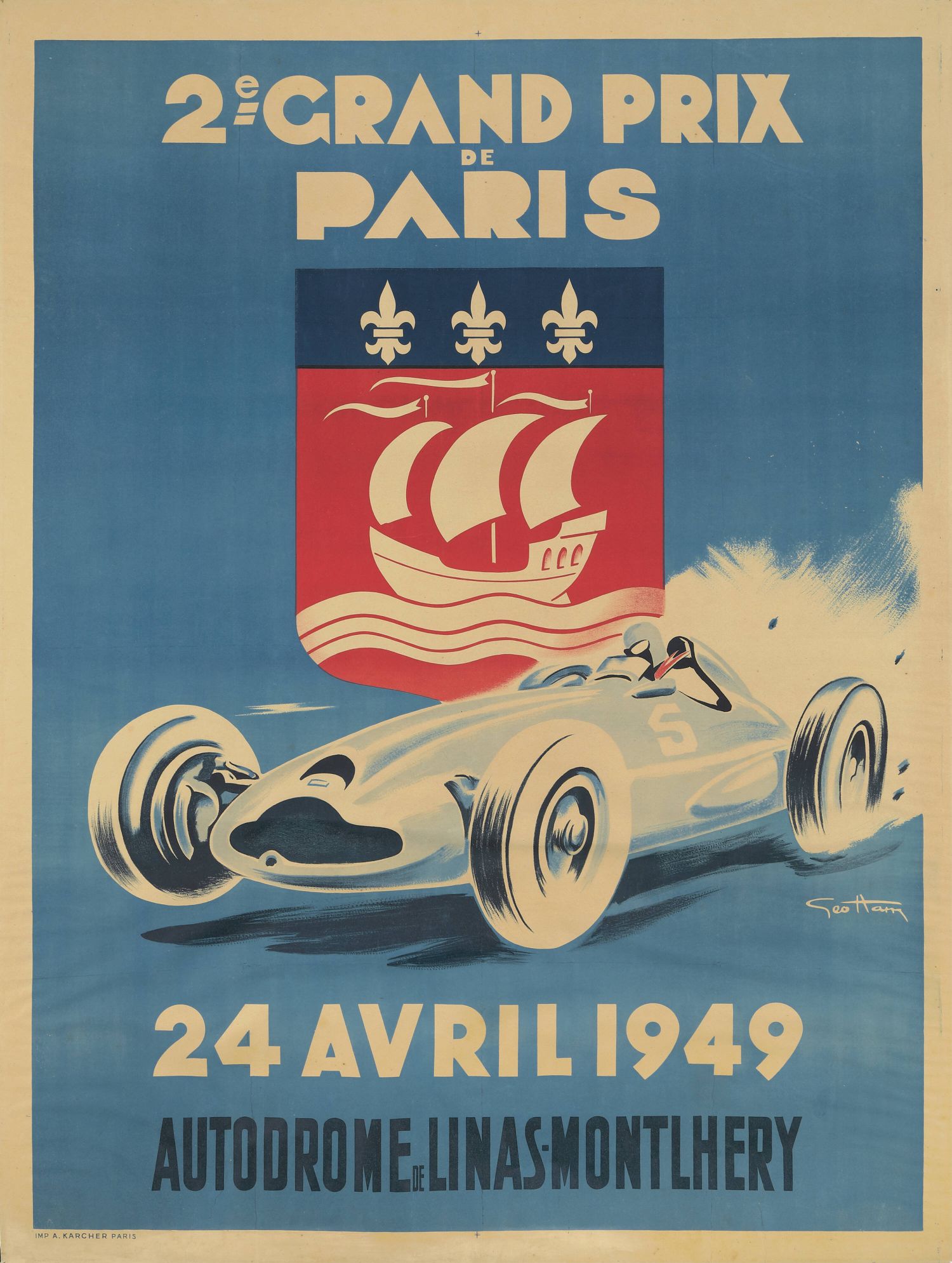 Esta imagen es un póster promocional del 2º Grand Prix de Paris, que tuvo lugar el 24 de abril de 1949 en el Autódromo de Linas-Montlhéry.