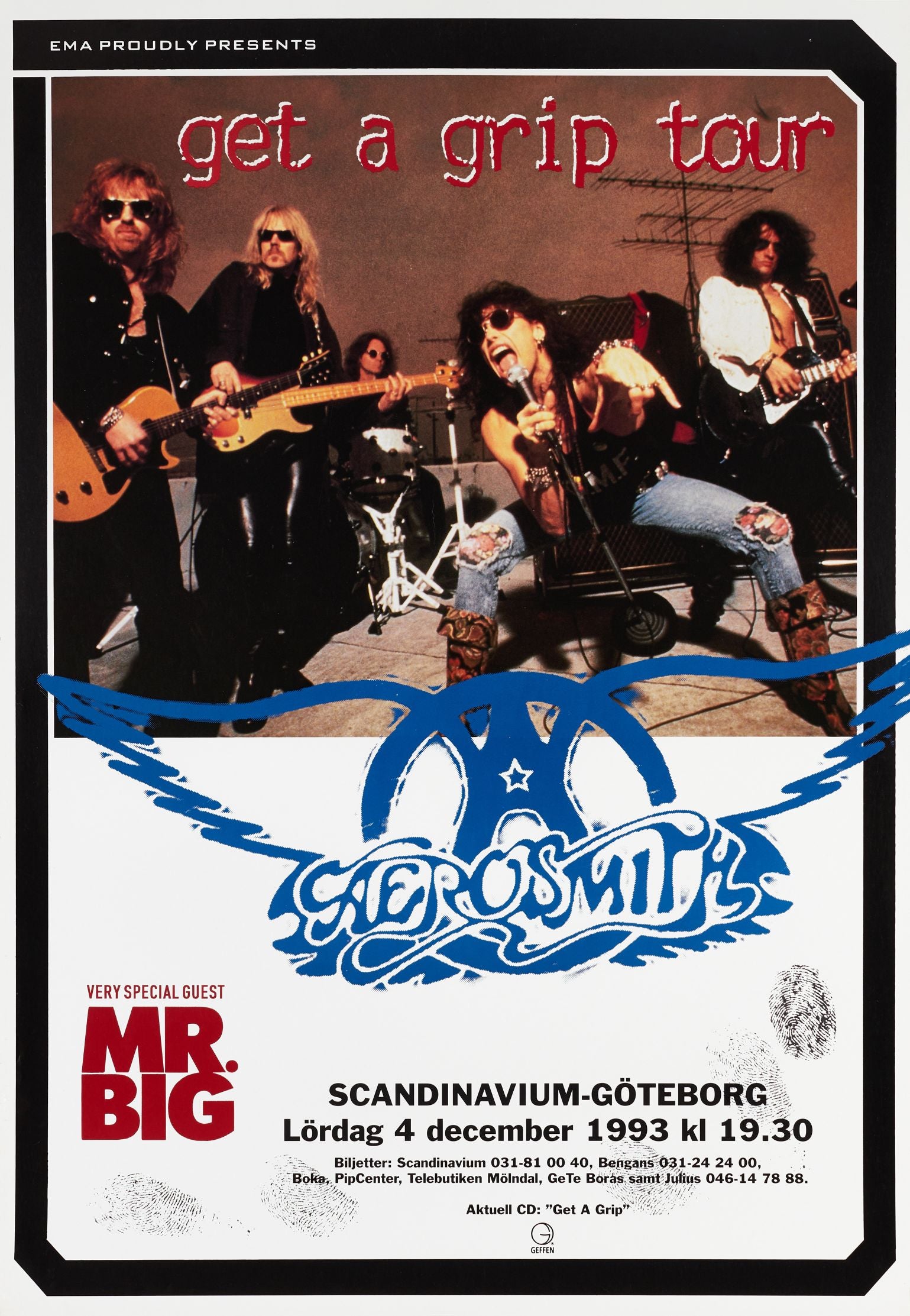 Aerosmith con Mr. Big como invitado en gira (diciembre 1993) | Póster impreso