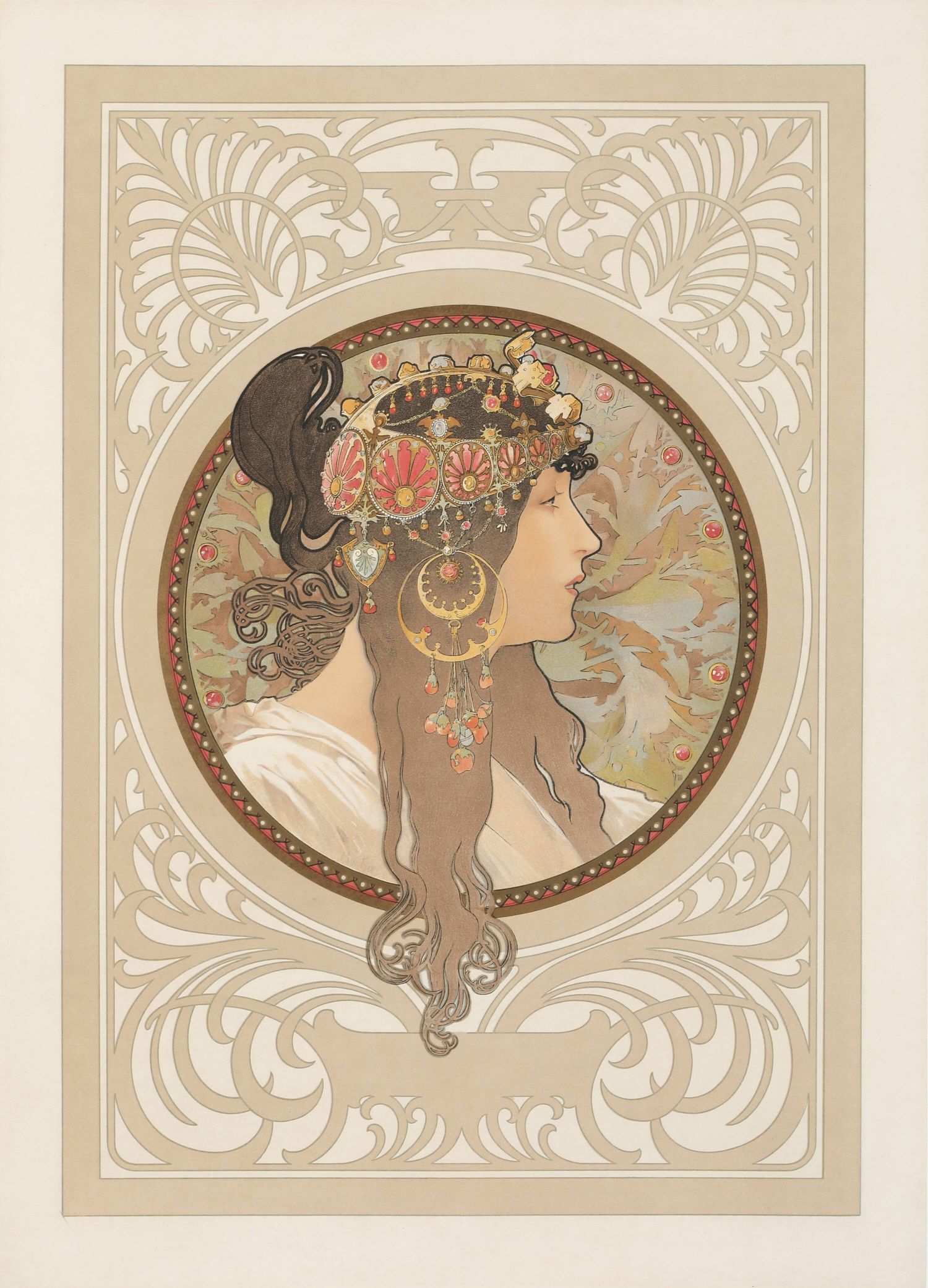 "Byzantine Head: Brunette" de Alphonse Mucha | Póster impreso