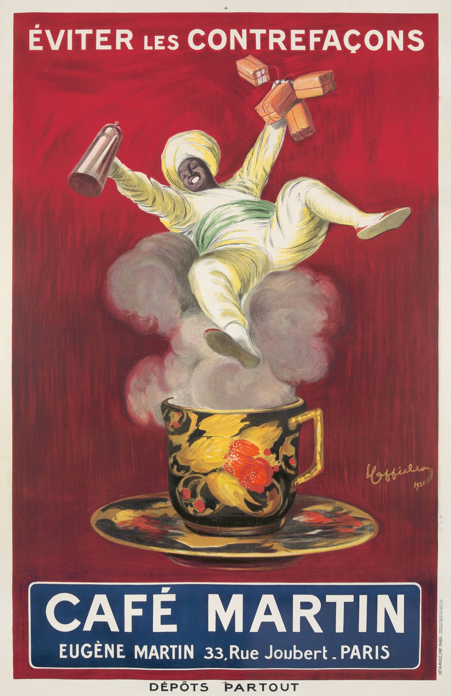 Póster publicitario antiguo de "Café Martin" de 1921, diseñado por el renombrado artista italiano Leonetto Cappiello (1875-1942).