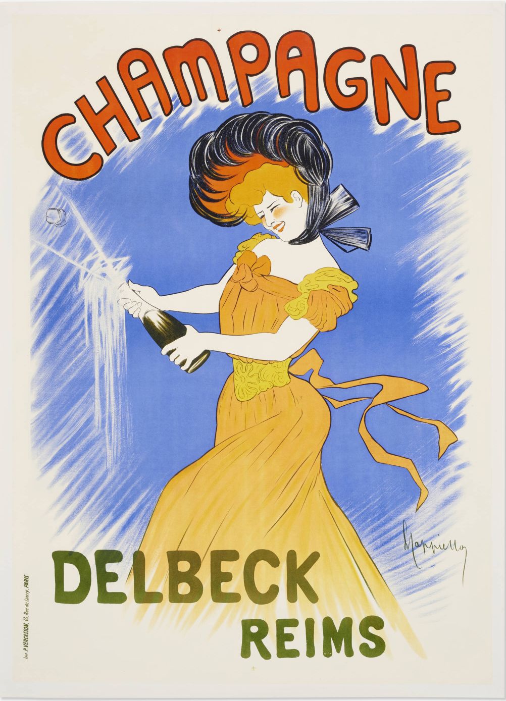 Póster publicitario de Champagne Delbeck Reims, creado por el renombrado artista Leonetto Cappiello (1875-1942) en 1902.