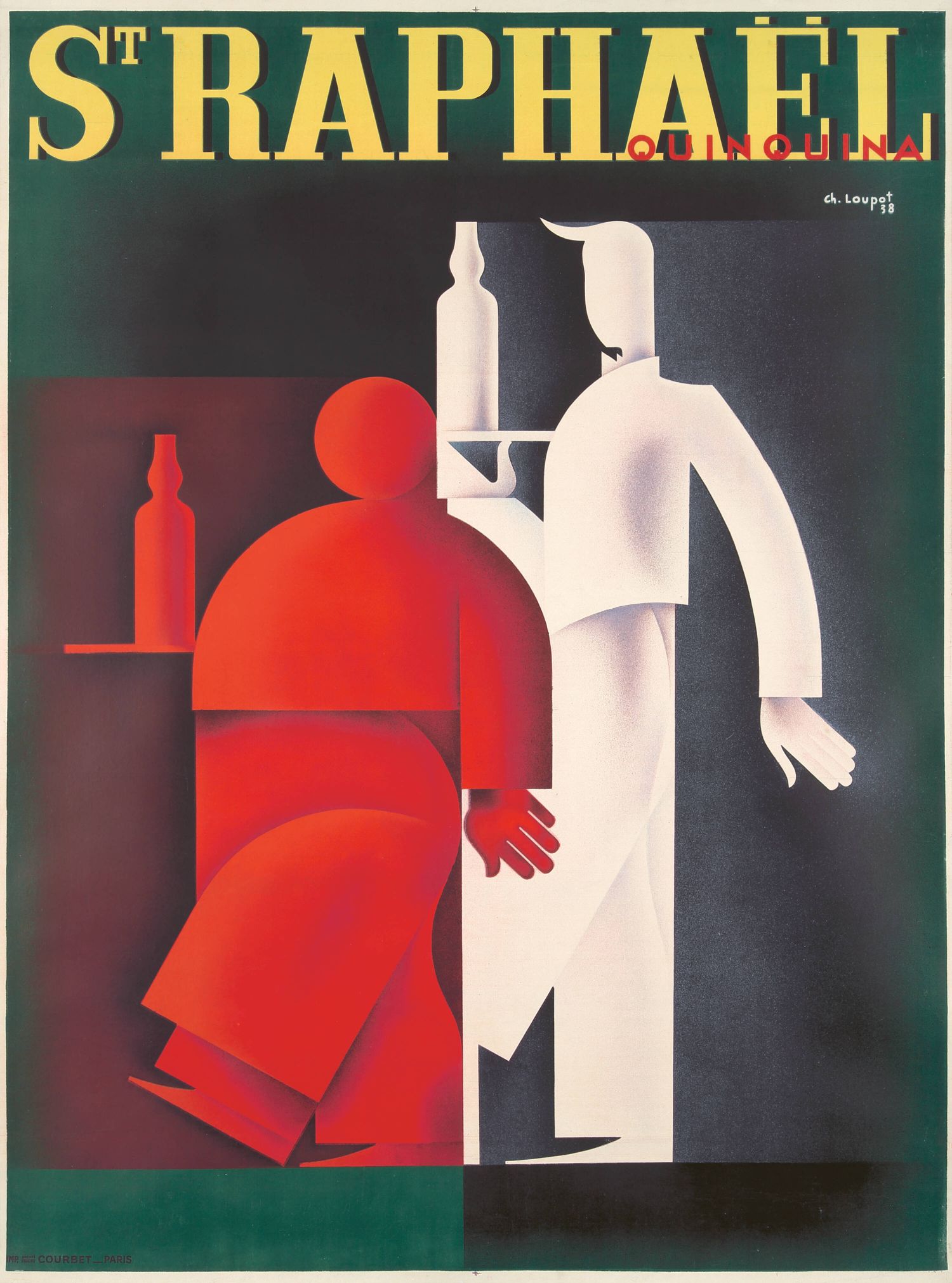 Esta imagen es un póster publicitario de St. Raphaël , una marca francesa de aperitivos, diseñado por el renombrado artista Charles Loupot (…