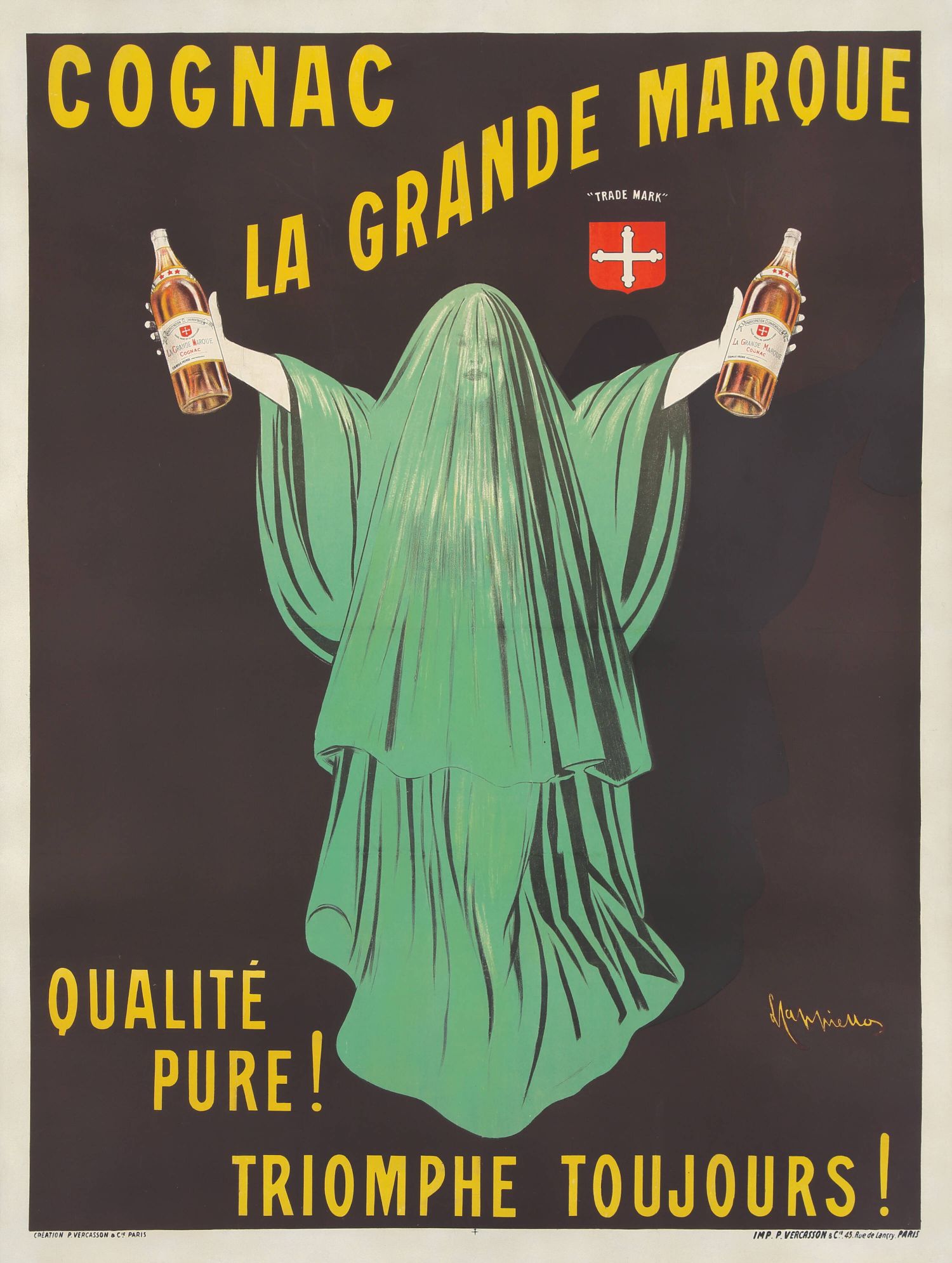 Póster publicitario antiguo de Cognac La Grande Marque, diseñado por el renombrado artista Leonetto Cappiello (1875-1942).
