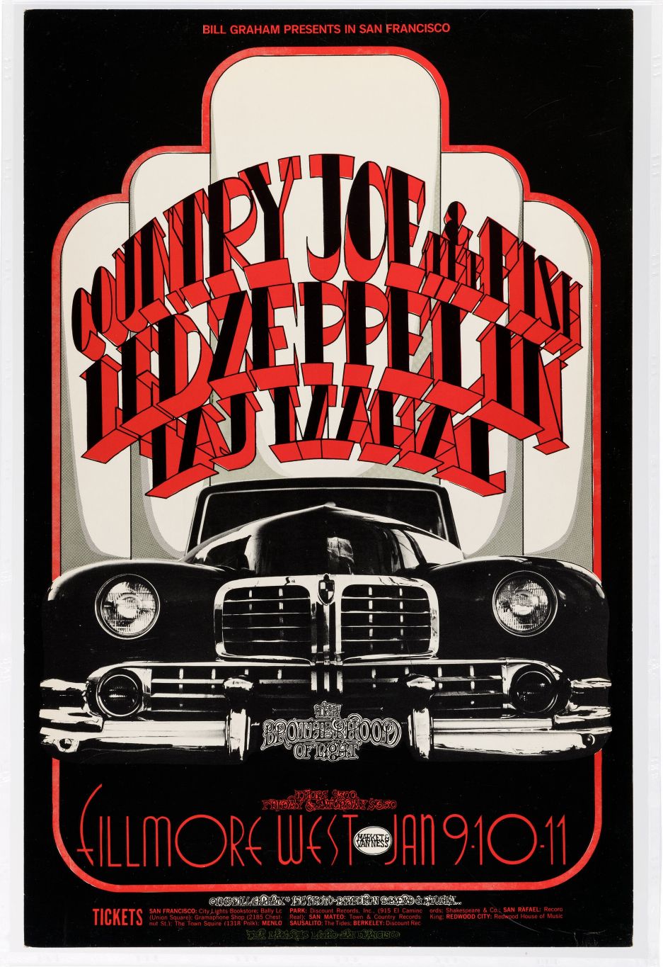 Country Joe & the Fish, Led Zeppelin, Taj Mahal (enero 1969) | Póster impreso