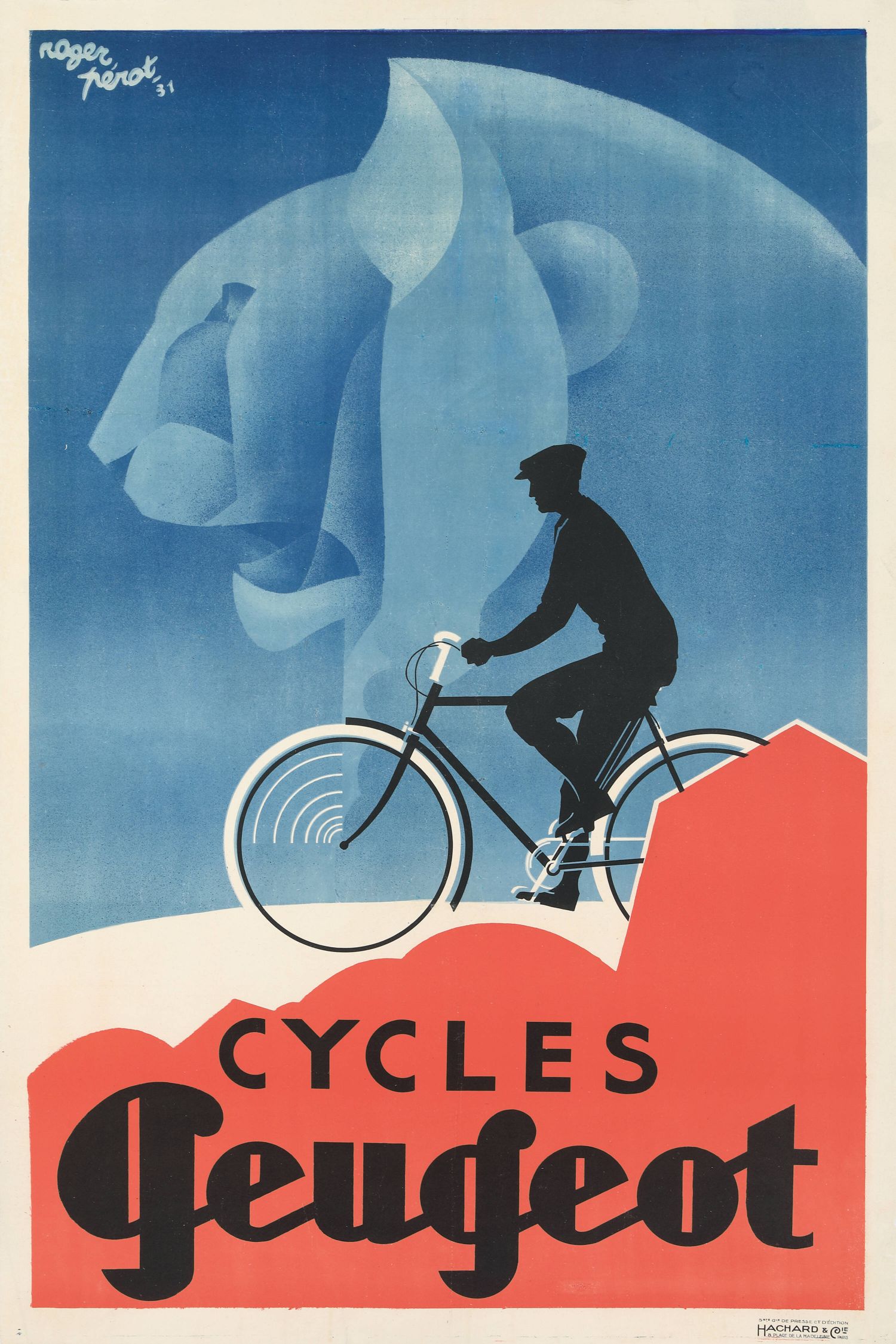 Este impactante cartel publicitario de "Cycles Peugeot", diseñado por Roger Pérot (1908-1976) en 1931, es un excelente ejemplo del estilo…