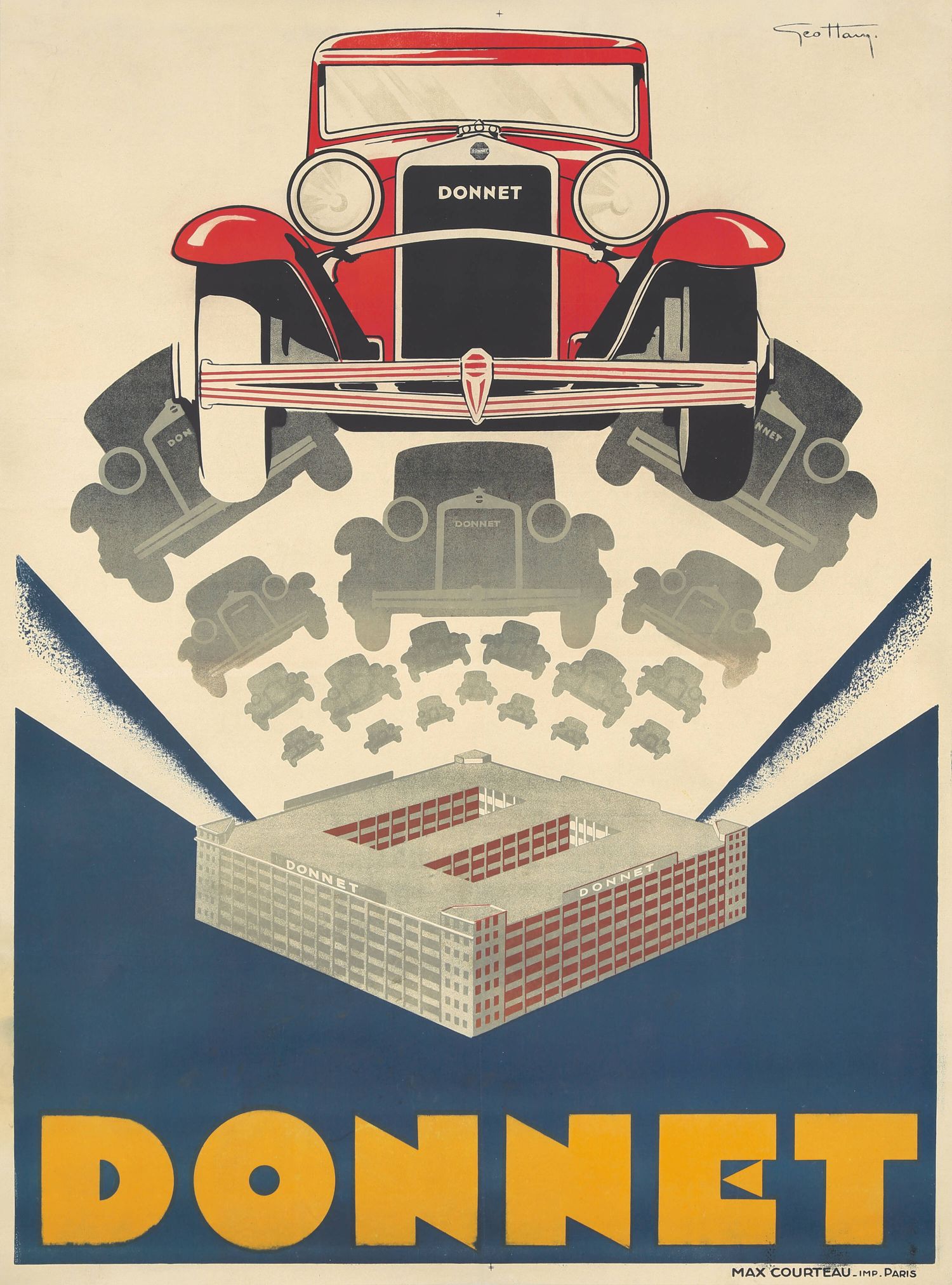 Este cartel publicitario antiguo de Donnet, una marca de automóviles francesa, fue diseñado por el artista Géo Ham (Georges Hamel, 1900-1972…