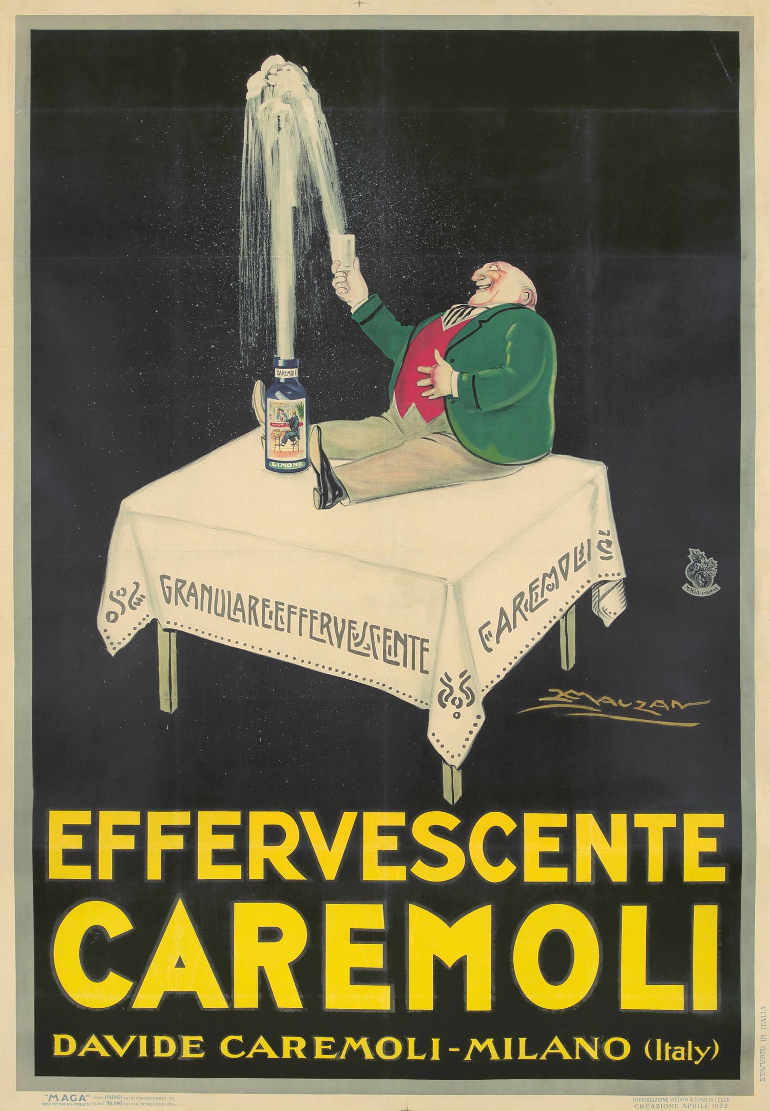 Esta imagen es un póster publicitario antiguo de " Effervescente Caremoli ", que data de 1922 , diseñado por Luciano Achille Mauzan (1883-…