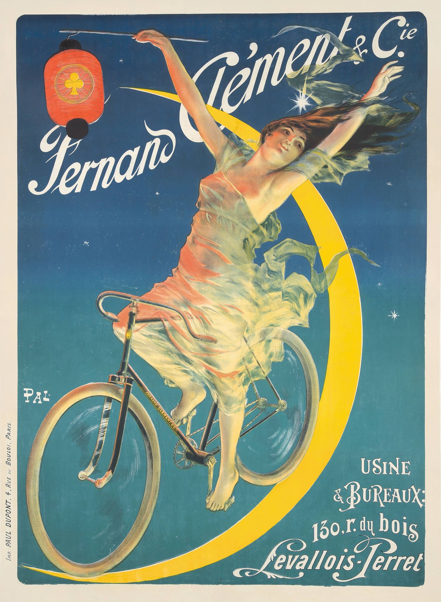 Este es un póster publicitario vintage de "Fernand Clement & Cie", una empresa de bicicletas. Fue creado por el artista Jean de Paleologue (1855-1942), también conocido como "PAL", en 1895. La imagen cuenta con la firma de la imprenta en el lado izquierdo, que es de Paul Dupont en París.