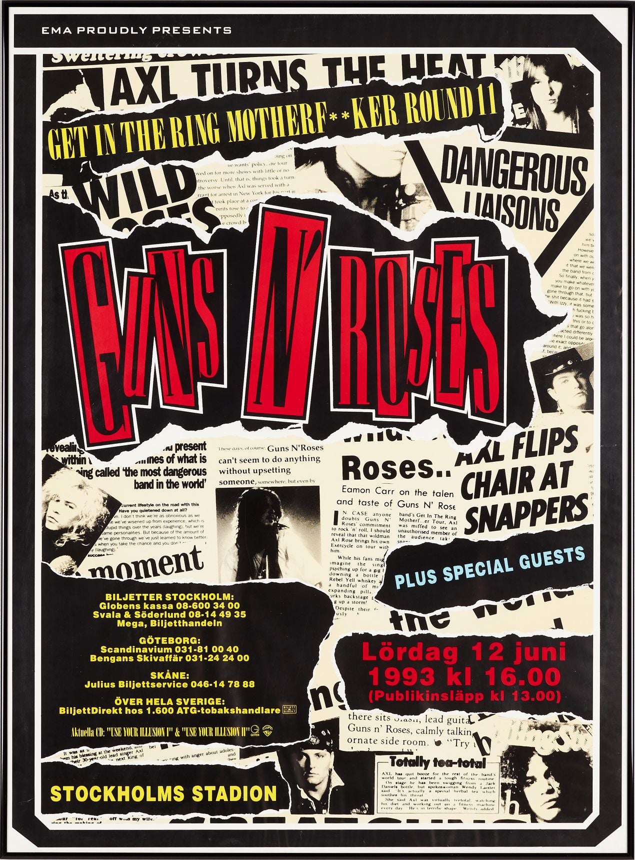 Guns N' Roses en concierto en Suecia (junio 1993) en impresión artística. Tamaños 30x50 a 60x80 y acabados Lámina, Bastidor o Con Marco. Compra en posterartchile.com