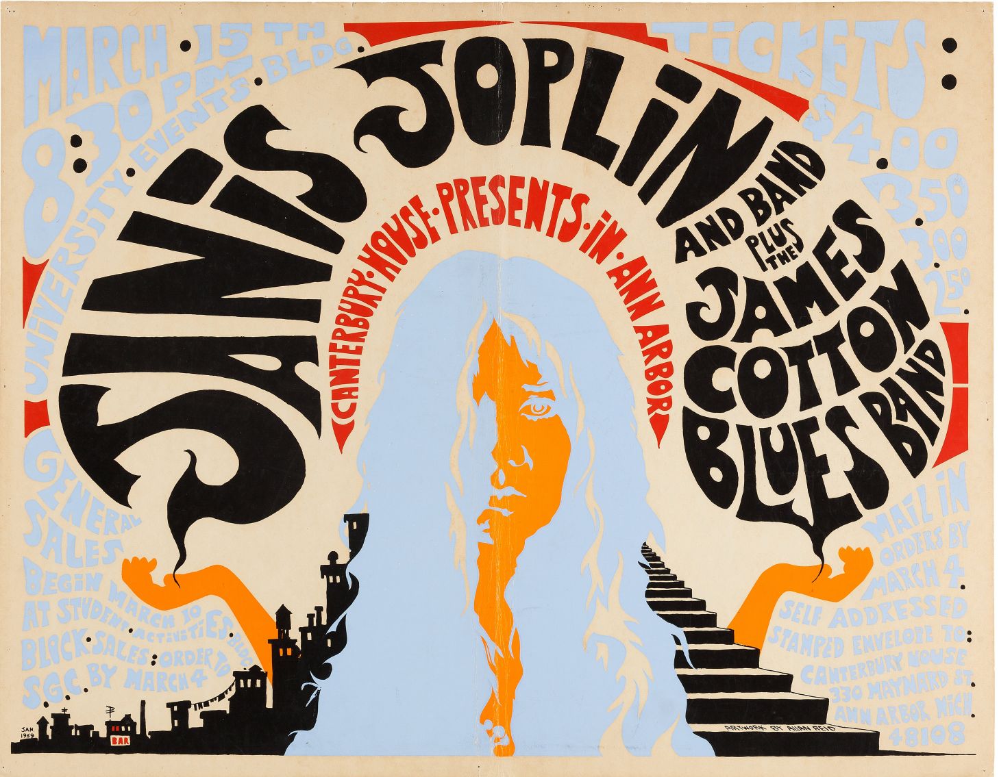 Janis Joplin y banda además de The James Cotton Blues Band (1969) en impresión artística. Tamaños 30x50 a 60x80 y acabados Lámina, Bastidor o Con Marco. Compra en posterartchile.com