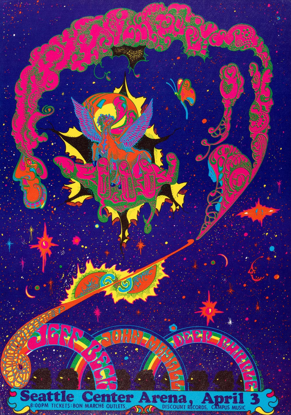 Revive Woodstock, siente el fuego de AC/DC o este poster de Jeff Beck, John Mayall, y Deep Purple en el Seattle Center Arena, en abril de 1969. Estos pósters no solo decoran, hablan de tu pasión por la música 🎸🎤.