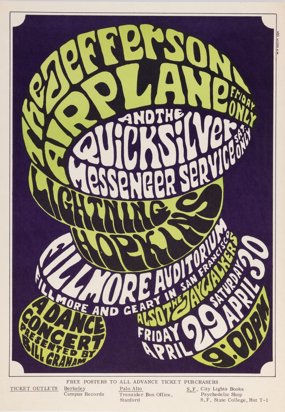 Jefferson Airplane, Quicksilver Messenger Service y más en concierto (1966) | Póster impreso
