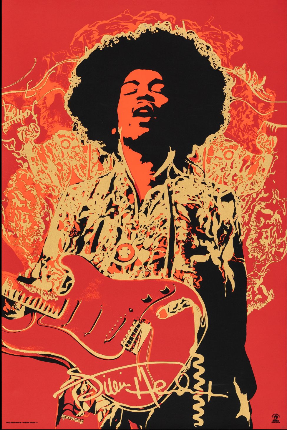 Jimi Hendrix (poster) en impresión artística. Tamaños 30x50 a 60x80 y acabados Lámina, Bastidor o Con Marco. Compra en posterartchile.com