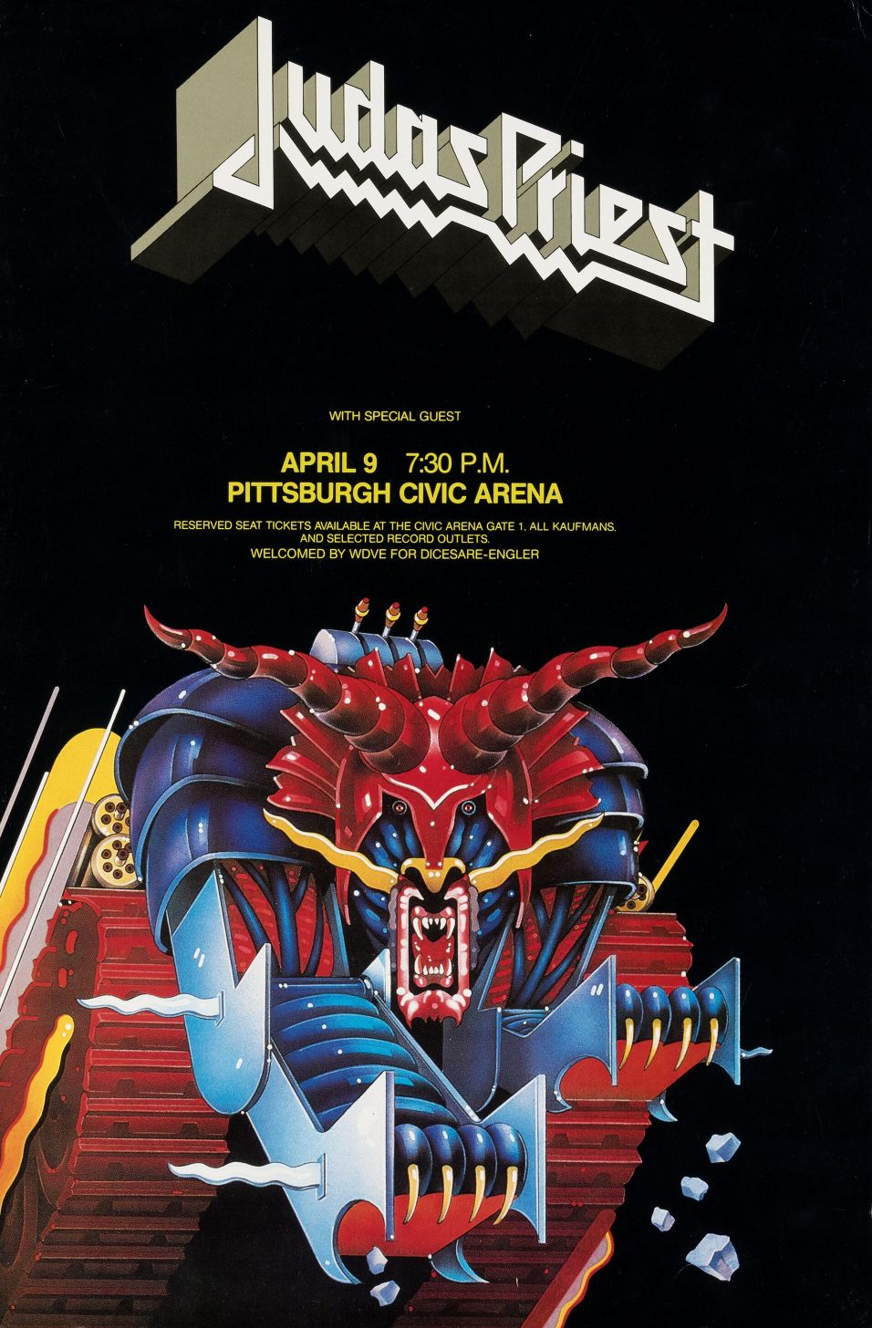 Judas Priest en Pittsburgh (abril 1984) en impresión artística. Tamaños 30x50 a 60x80 y acabados Lámina, Bastidor o Con Marco. Compra en posterartchile.com
