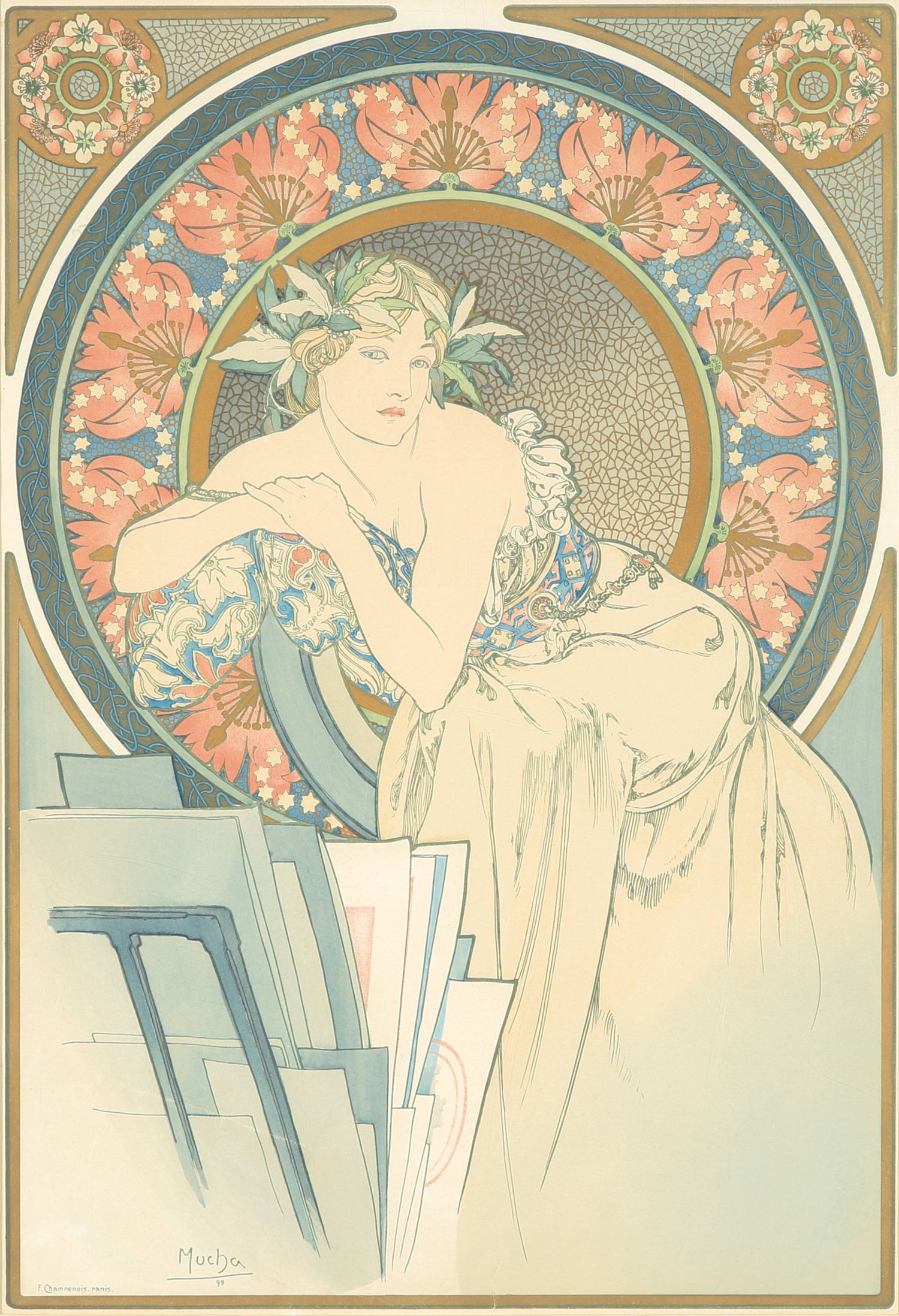 "Primrose and Feather" de Alphonse Mucha | Póster impreso