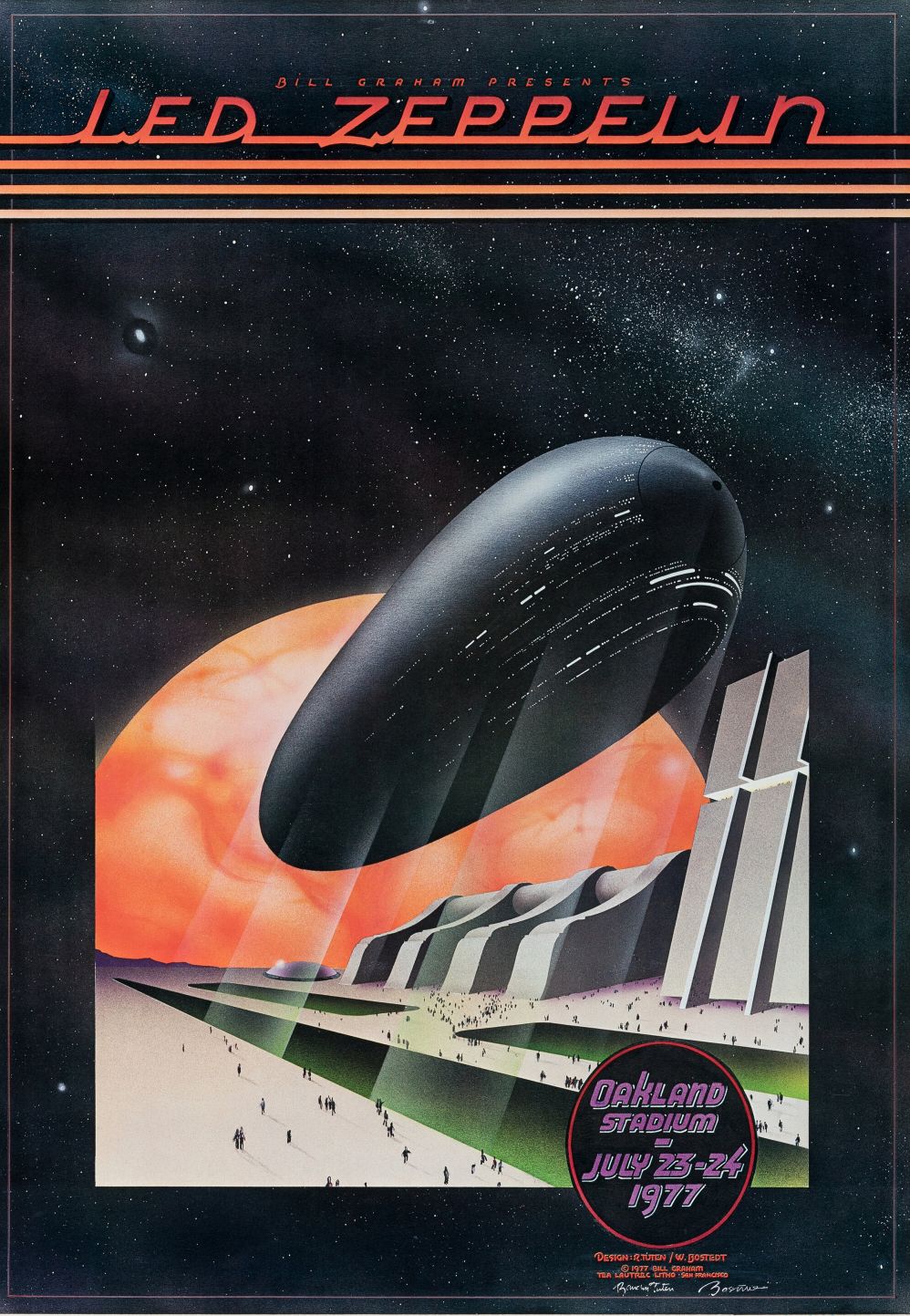 Revive Woodstock, siente el fuego de AC/DC en vivo, o este poster de este concierto de Led Zeppelin en Oakland, California, en 1977, en tu pared. Estos pósters no solo decoran, hablan de tu pasión por la música 🎸🎤.