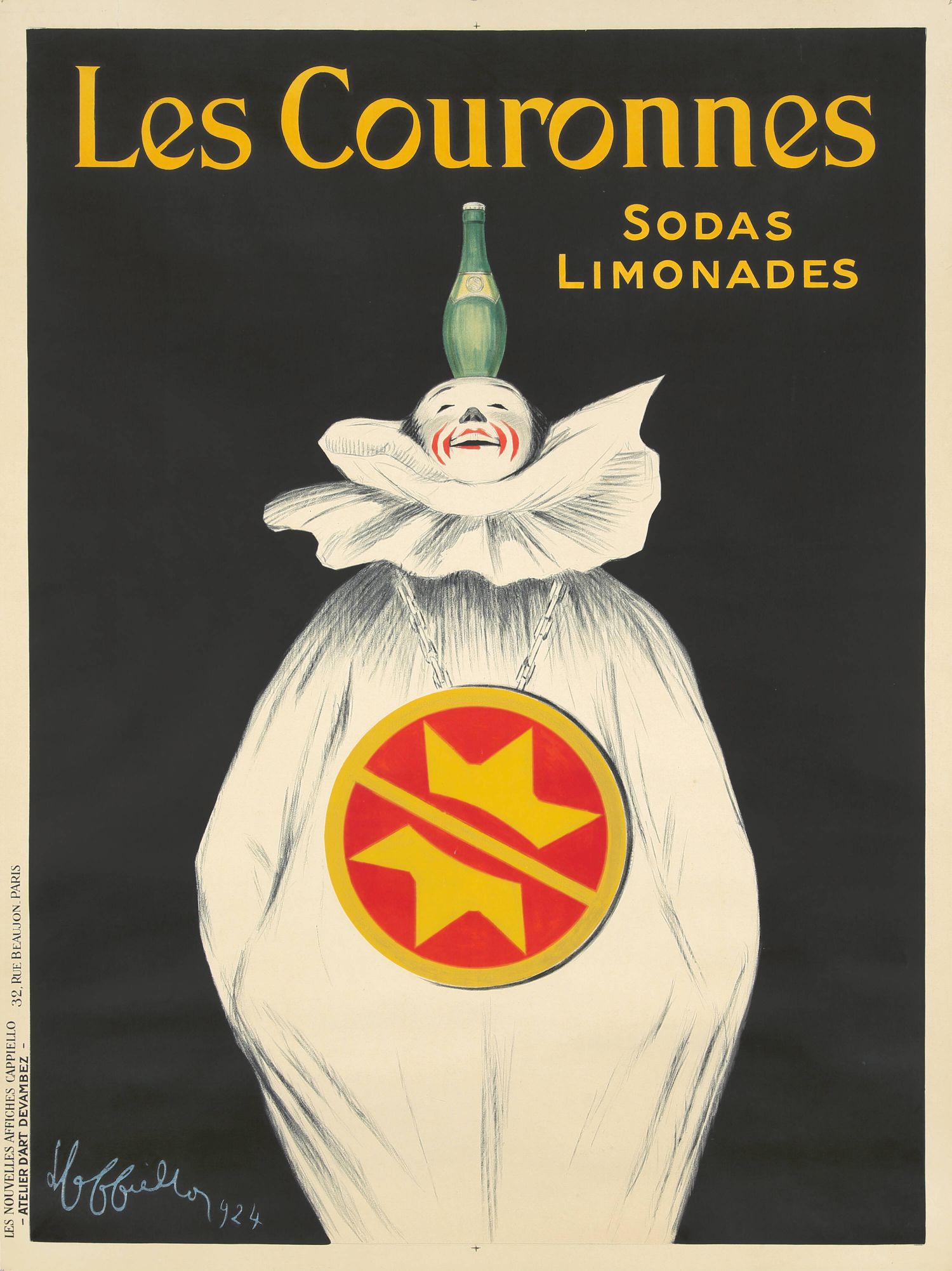 Póster publicitario vintage titulada "Les Couronnes Sodas Limonades", creada por el renombrado artista italiano Leonetto Cappiello (1875-1942) en 1924.
