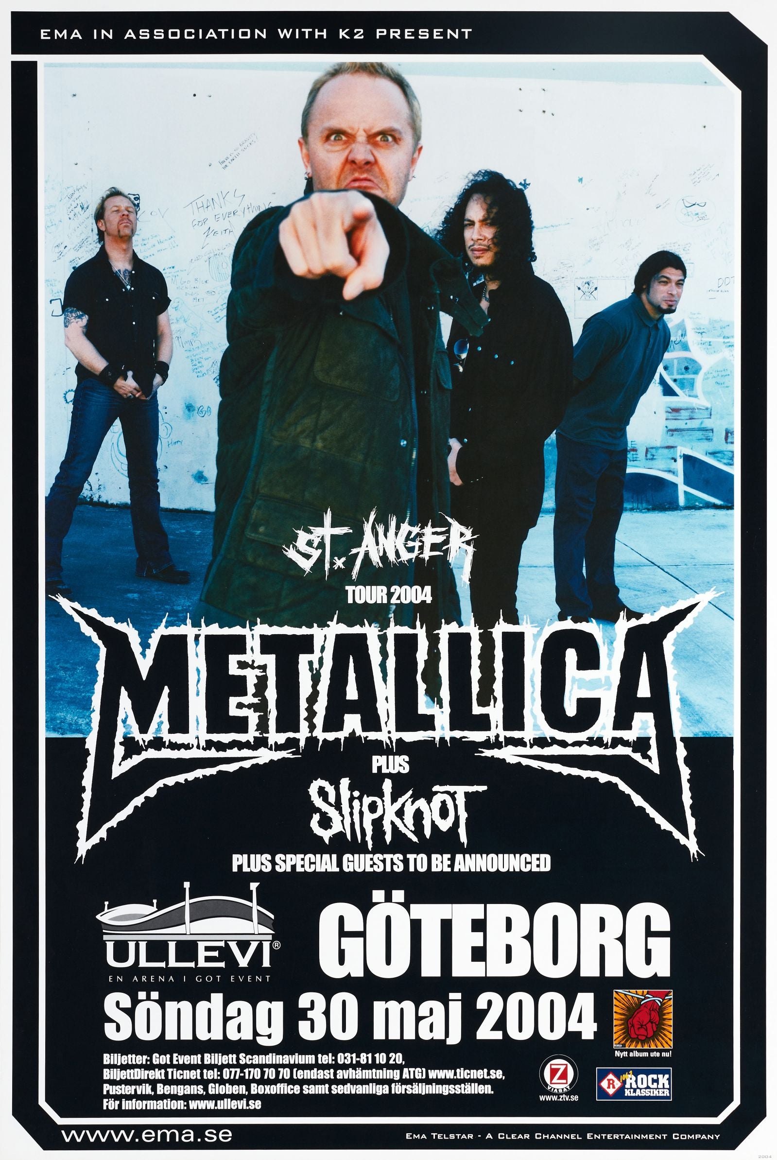 Revive Woodstock, siente el fuego de AC/DC o este poster de Metallica en concierto, con Slipknot como invitado especial, en Suecia, en mayo de 2004. Estos pósters no solo decoran, hablan de tu pasión por la música 🎸🎤.