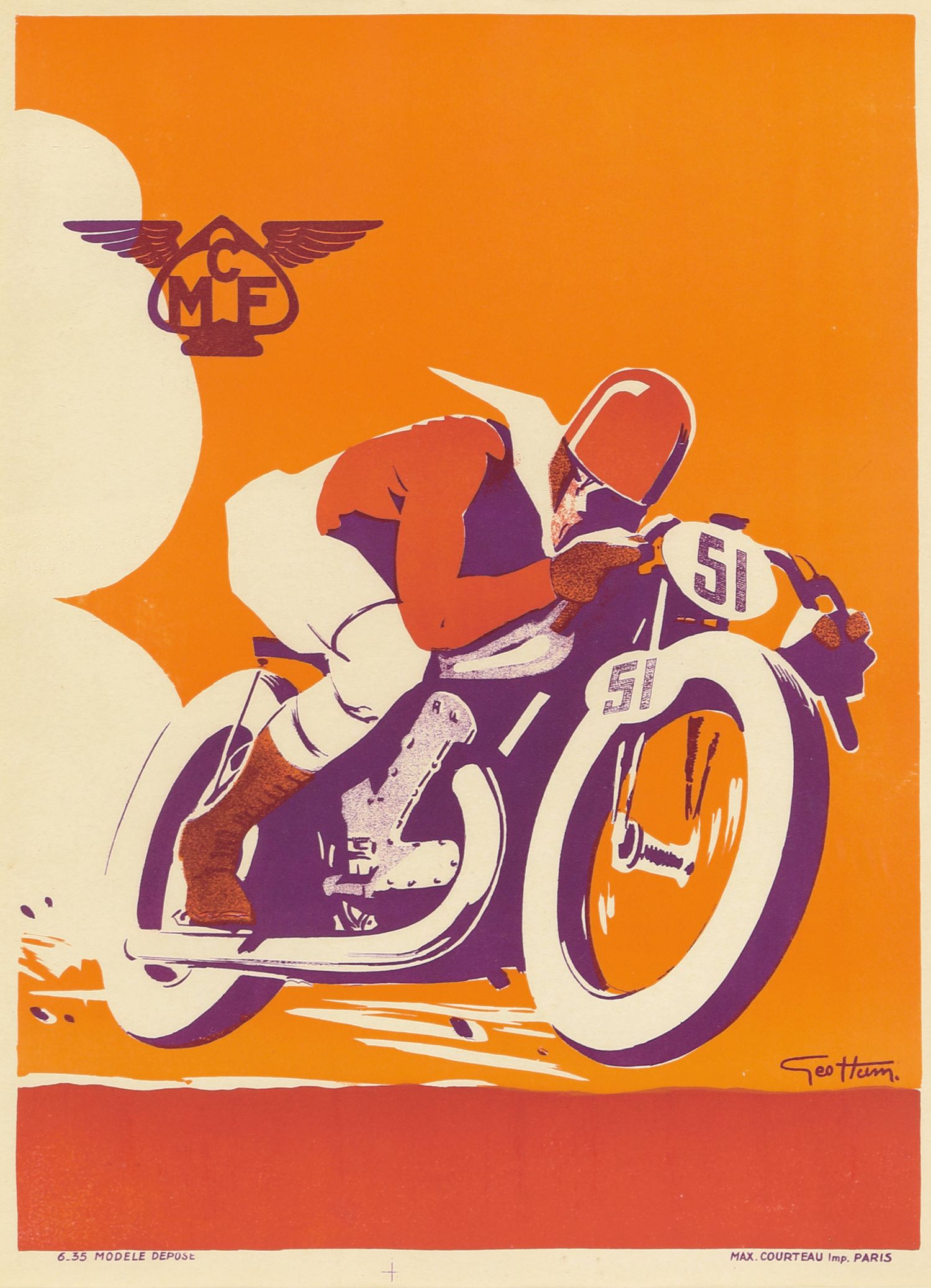 P óster vintage de 1935 para el Moto Club de Francia , creado por el renombrado pintor francés Géo Ham (también conocido como Georges Hamel…