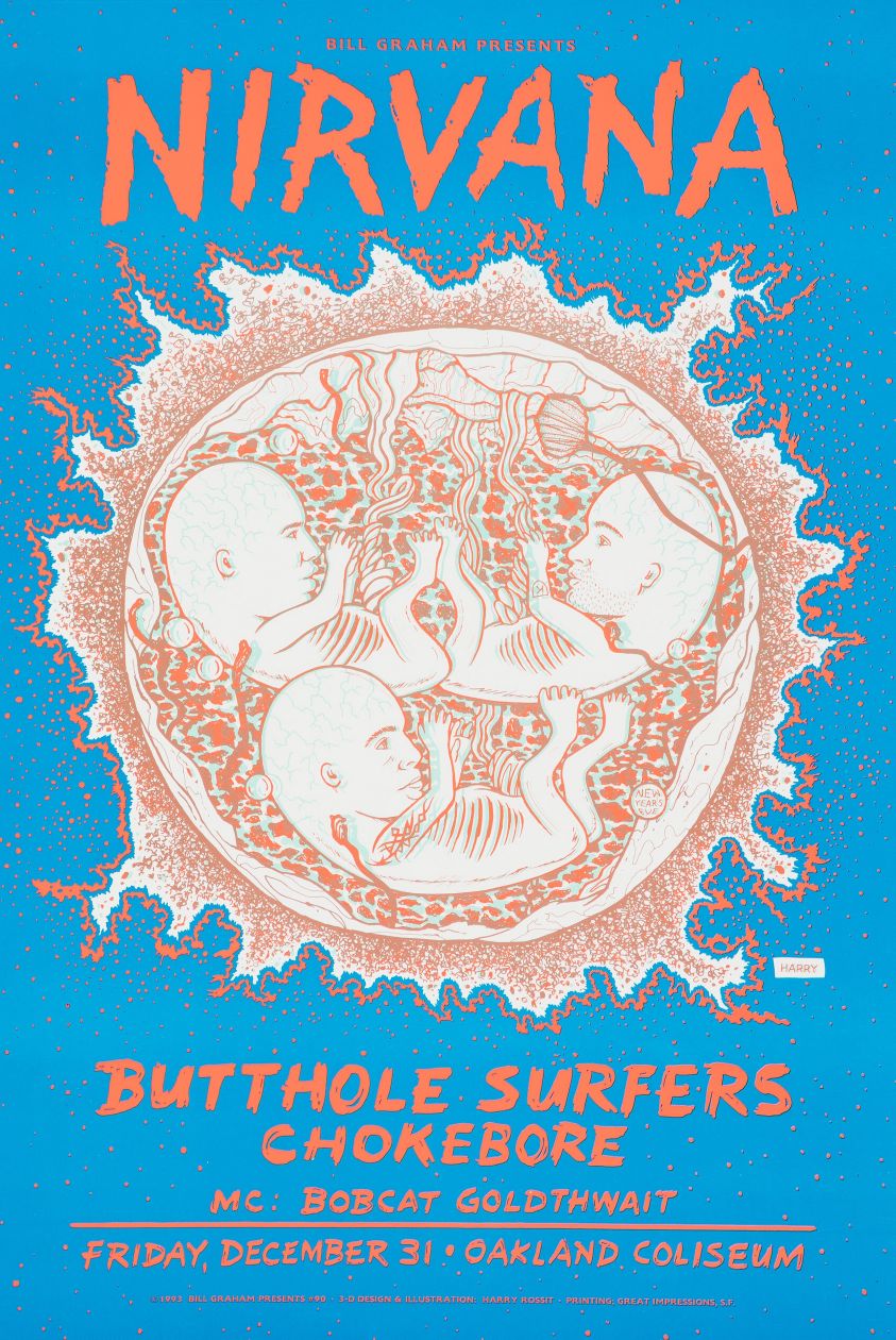 Nirvana en concierto (1993) en impresión artística. Tamaños 30x50 a 60x80 y acabados Lámina, Bastidor o Con Marco. Compra en posterartchile.com