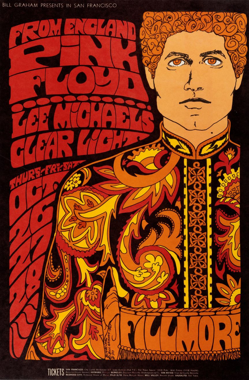 Revive Woodstock, siente el fuego de AC/DC o este poster de Pink Floyd, Lee Michaels, Clear Light de octubre de 1967, en el Fillmore Auditorium, de San Francisco, California.