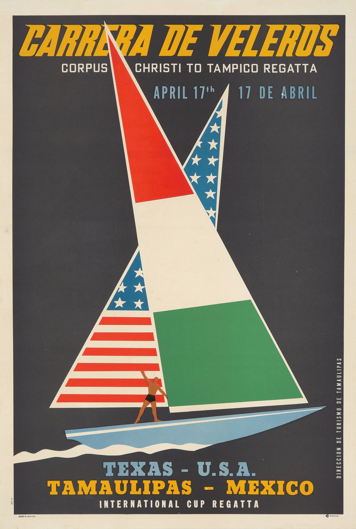Este cartel anuncia la emocionante "Carrera de Veleros Corpus Christi a Tampico Regata", también conocida como la "International Cup Regatta…