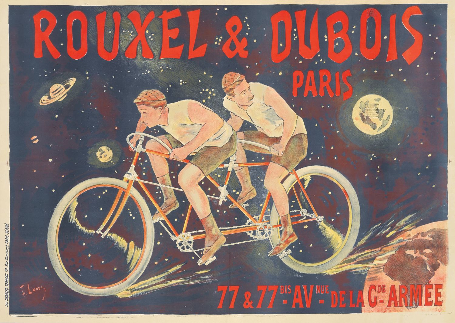 Este póster, diseñado por el artista francés Ferdinand Lunel (1857-1933) e impreso en 1894 por Charles Verneau en París, es un anuncio vintage de la marca de bicicletas Rouxel & Dubois. La tienda se ubicaba en 77 & 77 Bis Avenue de la Grande Armée, París.