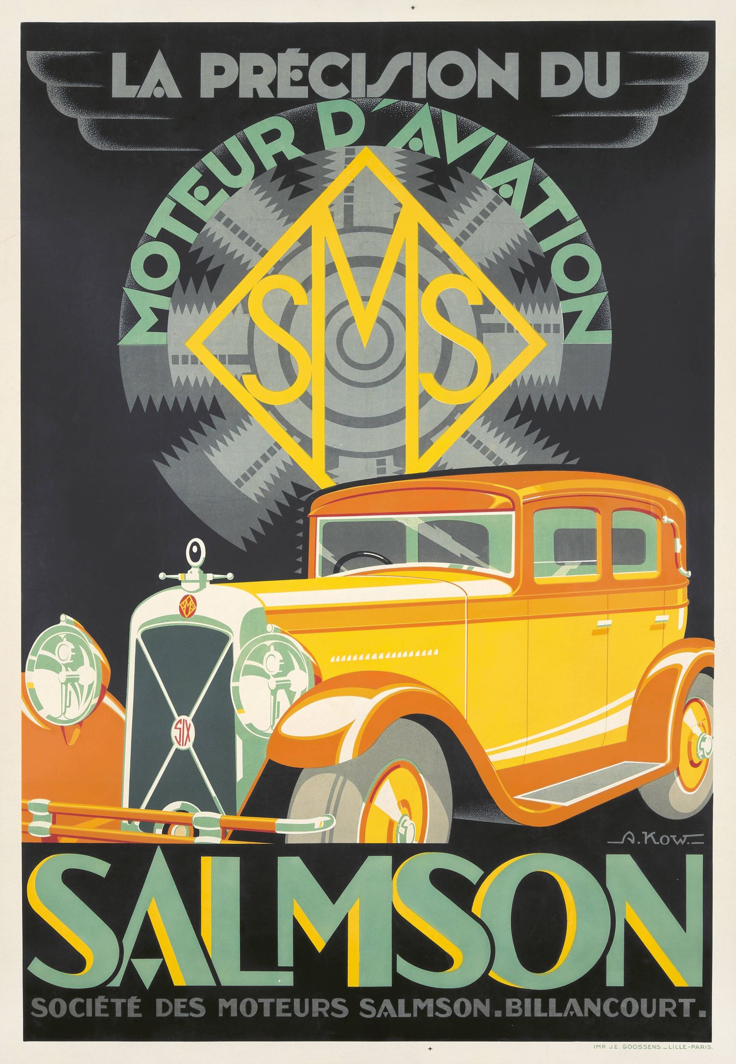 Póster publicitario de Salmson, una empresa francesa de ingeniería mecánica, diseñado por Alexis Kow (1901-1978) en 1929. Kow, nacido en Moscú, Rusia, falleció en un distrito de París, Francia.