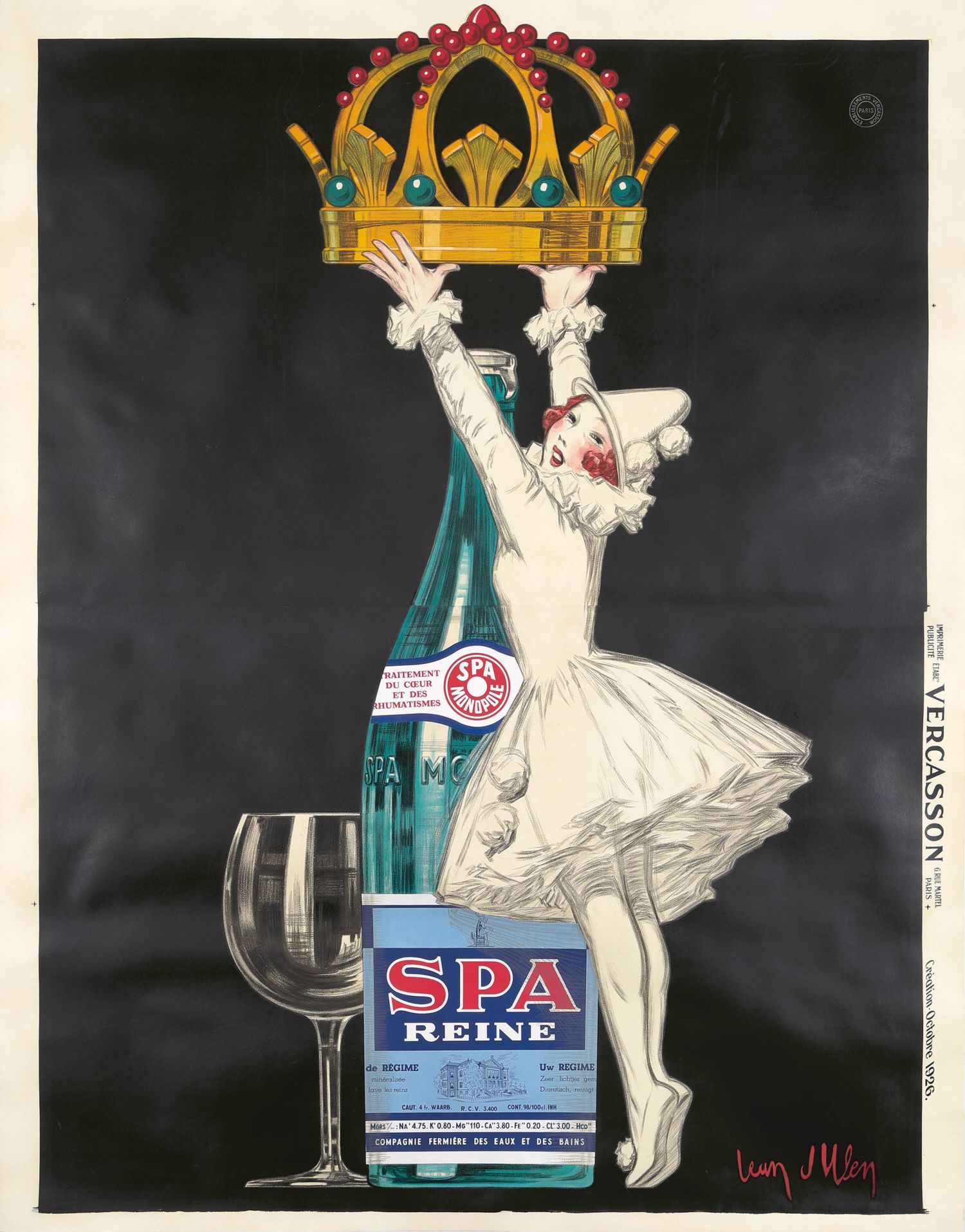 Esta imagen es un póster publicitario vintage de 1926 para Spa Reine , una de las aguas minerales naturales de la empresa belga Spa Monopole…