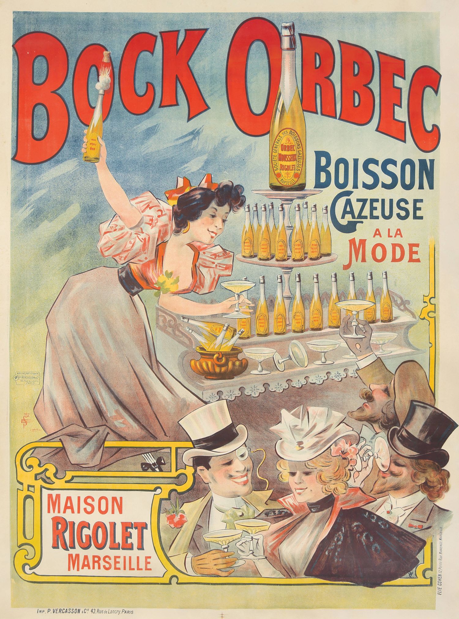 Esta imagen es un póster publicitario de Bock Orbec , una bebida carbonatada o champán. El cartel, fue impreso por Imp. P. Vercasson en…