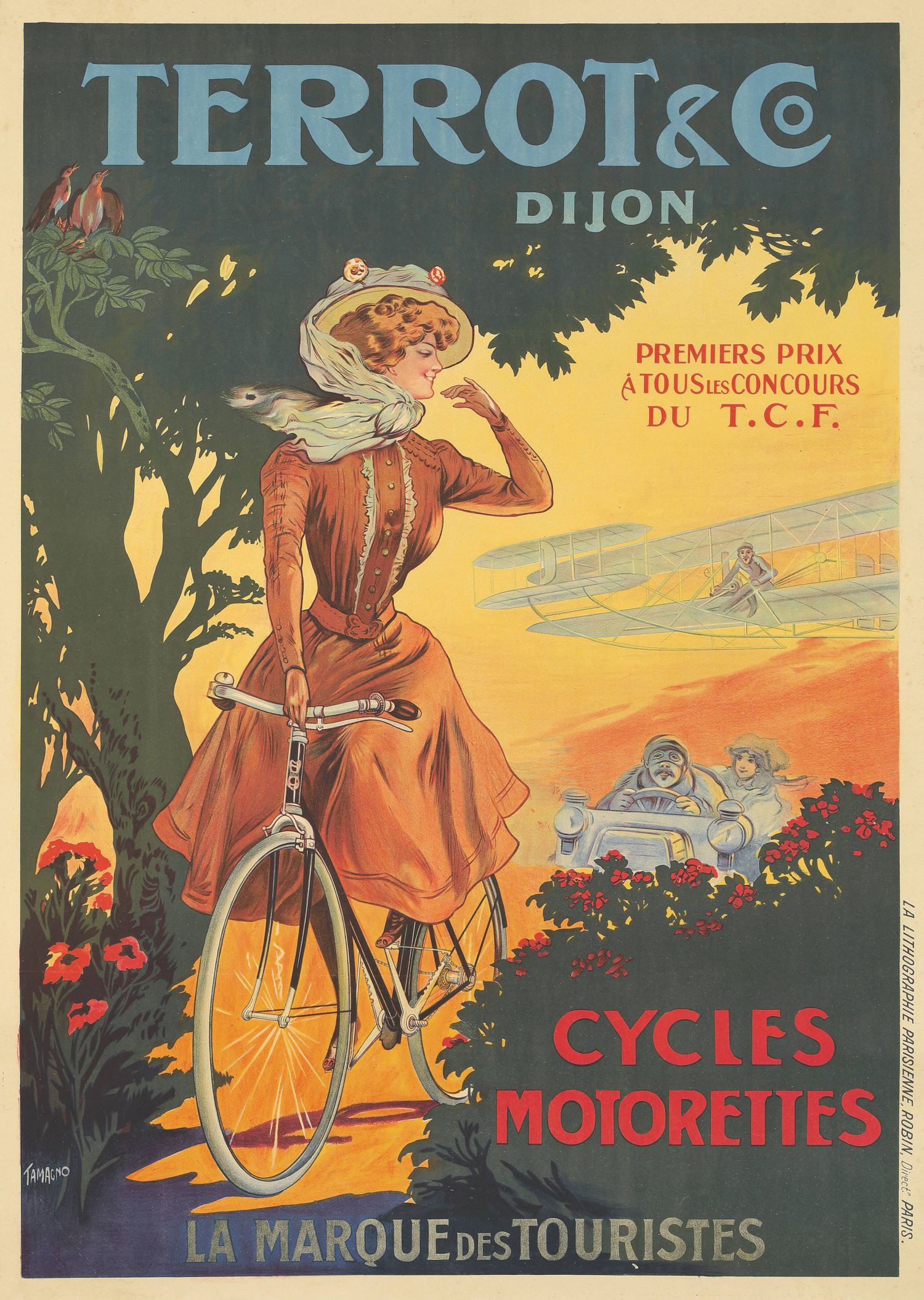 Esta imagen es un cartel publicitario vintage de " Terrot & Co / Dijon ", creado por el artista italiano Francisco Tamagno (1851–1933…