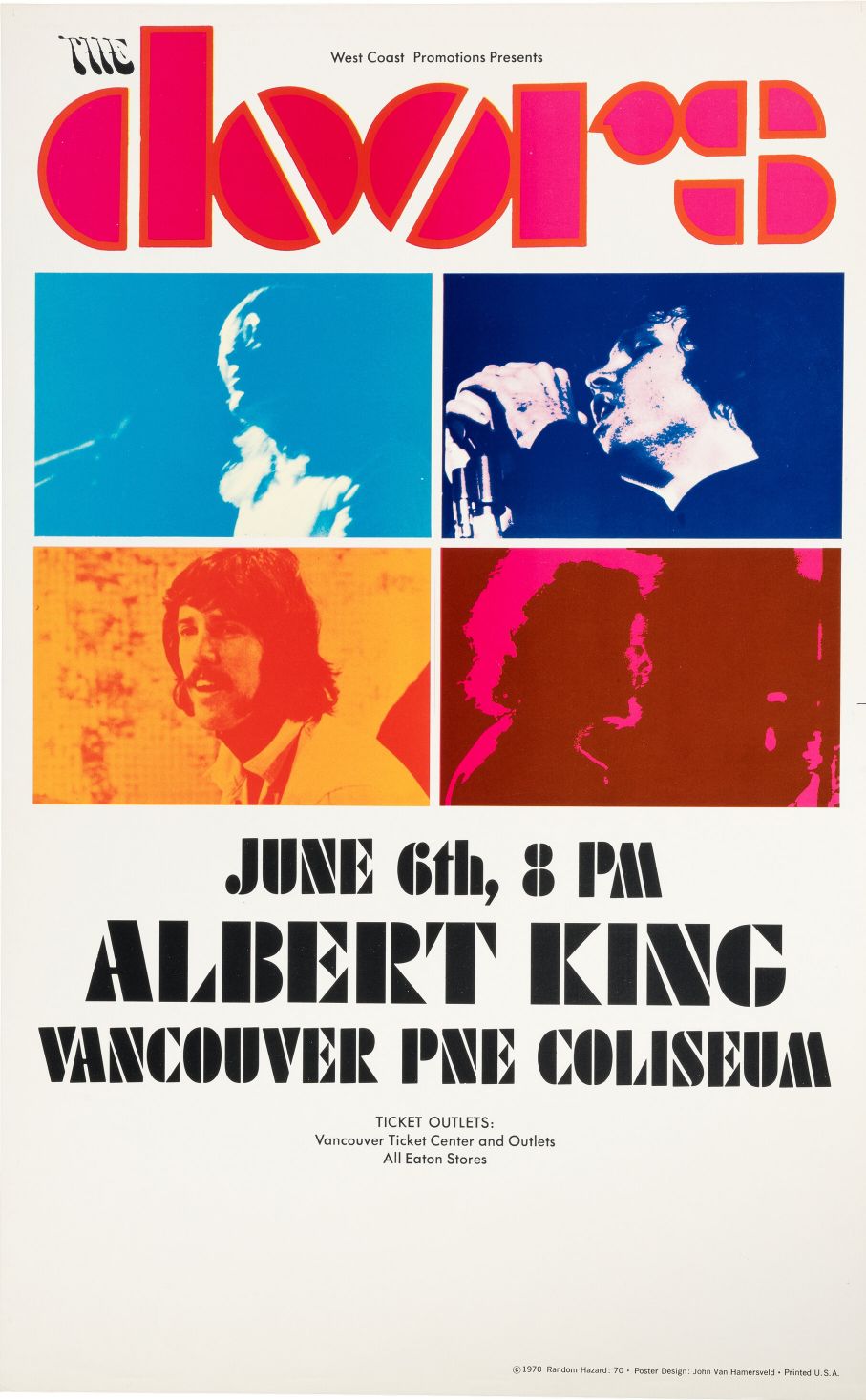 The Doors en concierto en Vancouver, Canada (1970) en impresión artística. Tamaños 30x50 a 60x80 y acabados Lámina, Bastidor o Con Marco. Compra en posterartchile.com