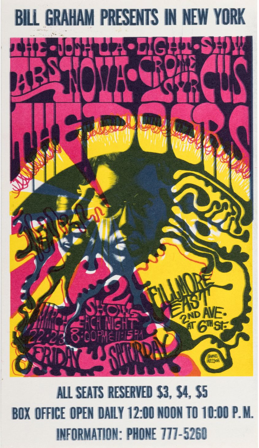 The Doors en Fillmore East (1968) en impresión artística. Tamaños 30x50 a 60x80 y acabados Lámina, Bastidor o Con Marco. Compra en posterartchile.com