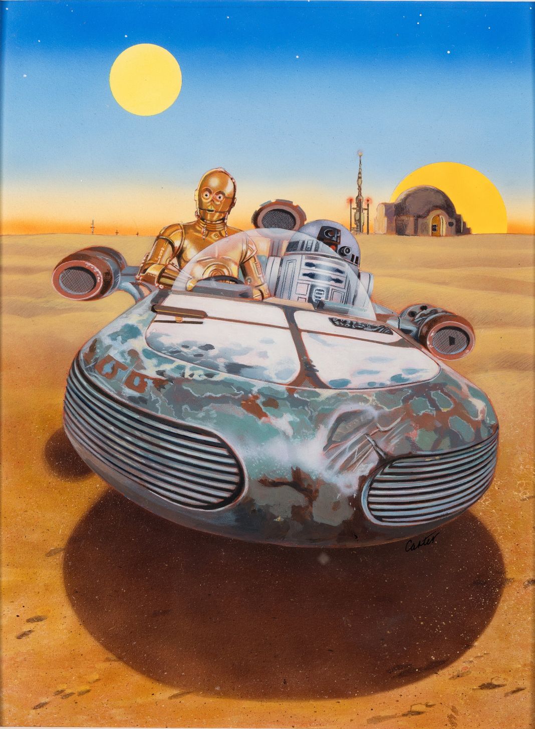 Star Wars Droides C3PO & R2D2 en speeder en impresión artística. Tamaños 30x50 a 60x80 y acabados Lámina, Bastidor o Con Marco. Compra en posterartchile.com
