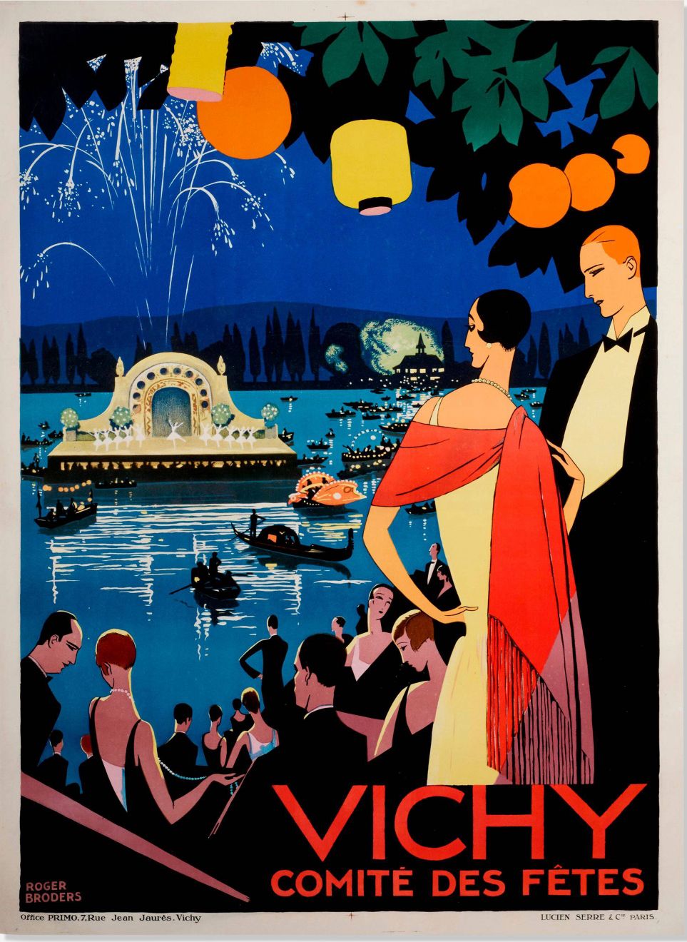 "Vichy - Comité des Fêtes" de Roger Broders en impresión artística. Tamaños 30x50 a 60x80 y acabados Lámina, Bastidor o Con Marco. Compra en posterartchile.com