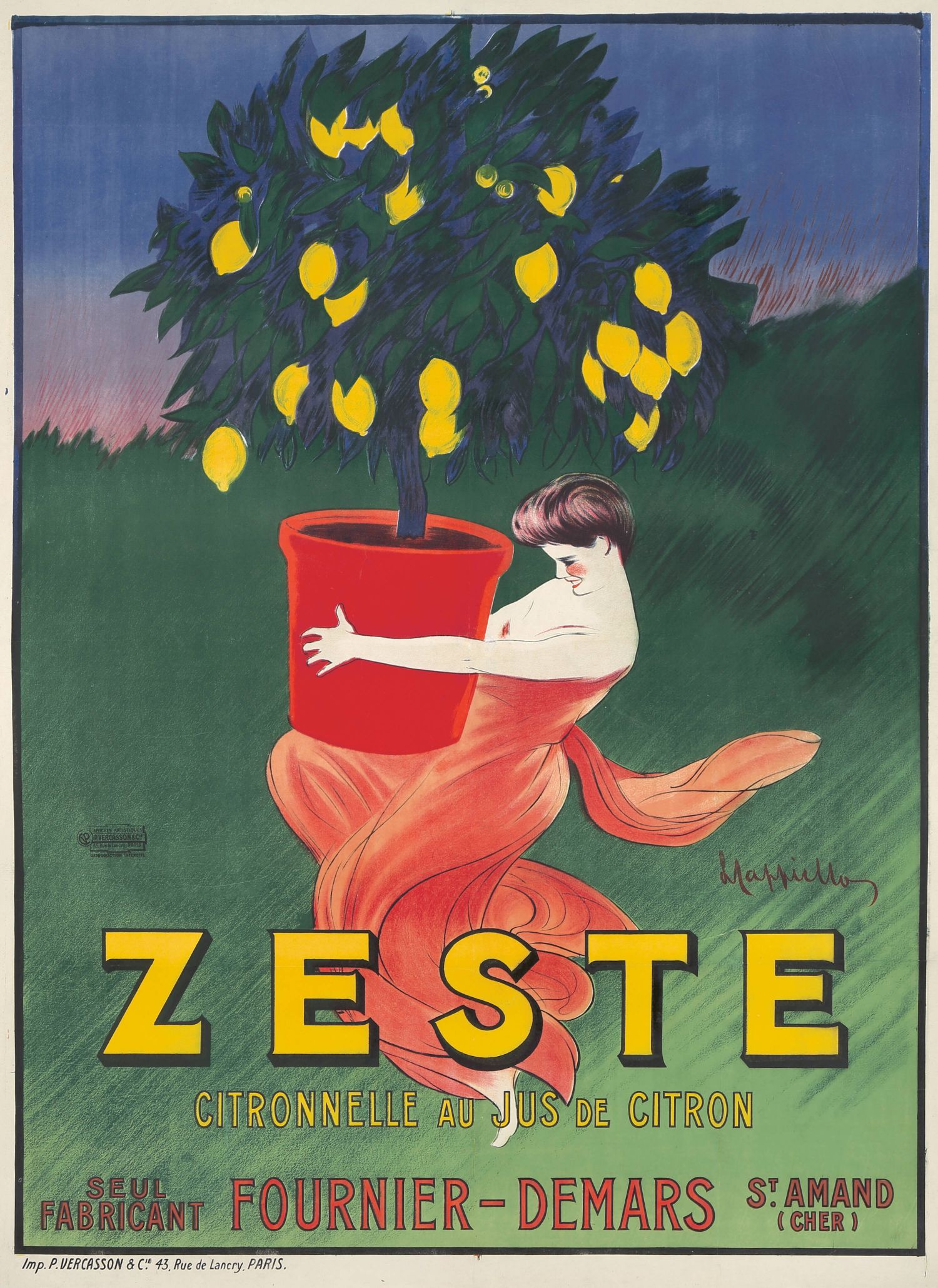 Leonetto Cappiello es conocido por su estilo vibrante y dinámico en el arte de los carteles, y esta obra es un claro ejemplo de su habilidad para crear imágenes memorables y atractivas. El cartel fue impreso por P. Vercasson & Cie en París, Francia.